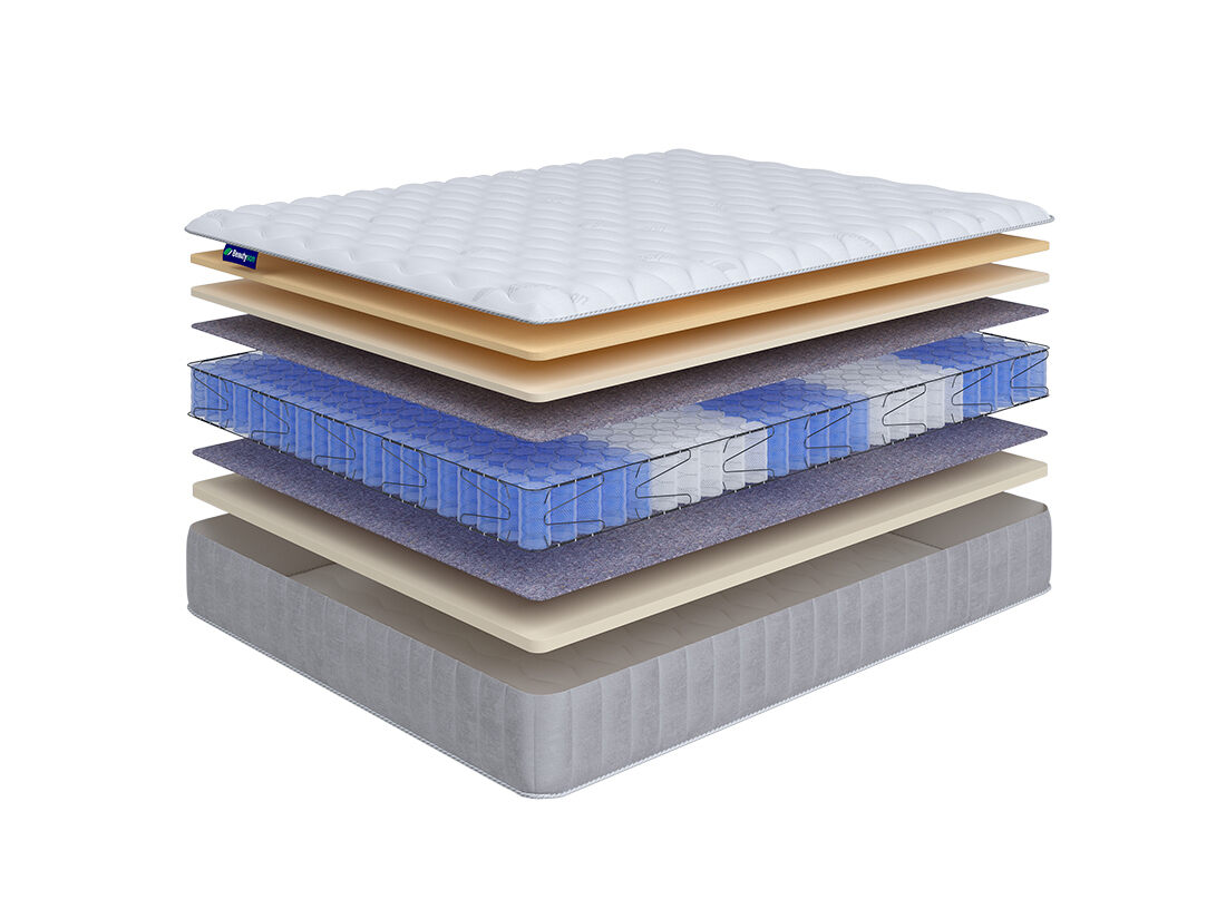 Hit Ecosoft Memory Lux TFK+ выполнен на основе независимого пружинного блока плотностью 600 пружин на спальное место, обеспечивающего оптимальную анатомическую поддержку спящему человеку. 5 зон жёсткости пружин в матрасе соответствуют каждой зоне тела человека, обеспечивая тем самым равномерное распределение веса тела и нахождение позвоночника в естественном положении.