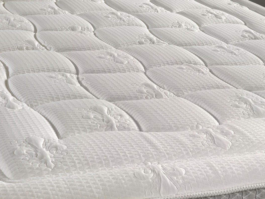 Чехол матраса украшен рисунком флорентийской лилии. Объёмная фактурная стёжка обеспечена слоем Memoform и выполнена только с одной стороны изделия, с другой – ровная. Это сделано для того, чтобы сделать матрас ещё жёстче, если использовать нижнюю поверхность в качестве спальной. Для продления срока эксплуатации чехла по бурлету изделия пущена вставка-полоска из натуральной замши.