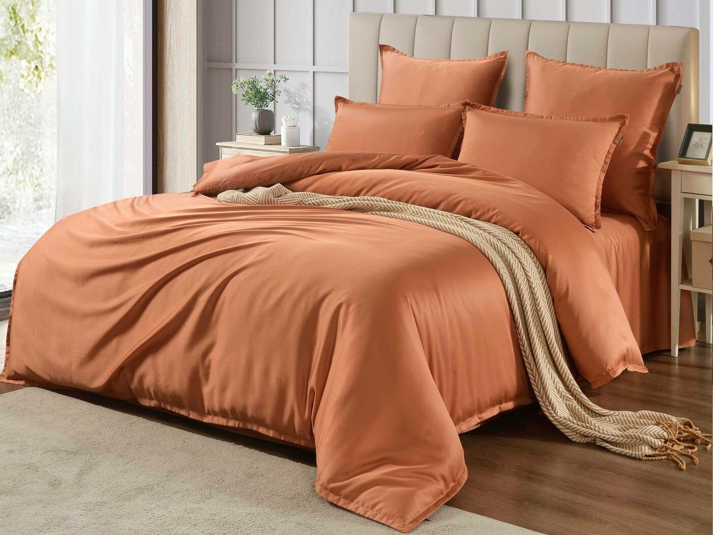 Комплекты постельного белья Ансель: нежность и комфорт каждую ночь Ищете постельное бельё, которое подарит вам незабываемый комфорт и уют? Тогда комплекты постельного белья Ансель из тенселя — идеальный выбор! Тенсель — это натуральная ткань, изготовленная из волокон эвкалипта. Она обладает рядом преимуществ перед хлопковыми тканями: более нежная, шелковистая и приятная на ощупь. Комплекты постельного белья Ансель включают в себя наволочки, простыню и пододеяльник. Они выполнены из 100% тенселя, что гарантирует высокое качество и долговечность. Одно из главных преимуществ тенселя — его способность пропускать воздух и хорошо впитывать и испарять влагу. Это обеспечивает оптимальный микроклимат во время сна, предотвращает появление неприятных запахов и бактерий. Ещё одно важное свойство тенселя — антибактериальный эффект. Это значит, что постельное бельё Ансель не вызывает аллергии и подходит для людей с чувствительной кожей. Уникальное свойство тенселя — климат-контроль. При высокой температуре в помещении ткань обладает лёгким и приятным охлаждающим эффектом, а при низкой создаёт ощущение тепла и комфорта. Комплекты постельного белья Ансель — это идеальный выбор для тех, кто ценит комфорт, качество и натуральность. Они станут отличным дополнением к вашему интерьеру и подарят вам незабываемые ощущения во время сна.