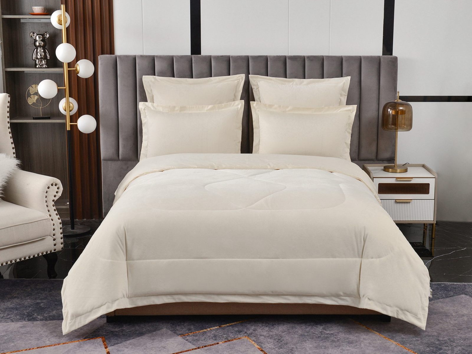 Изготовленный из качественной вискозы и мягкого хлопка трендовых цветов, комплект создаёт приятное ощущение на коже. Его экологичное наполнение из 100% эковолокна обеспечивает гипоаллергенные свойства, подарив вам спокойные и уютные ночи.