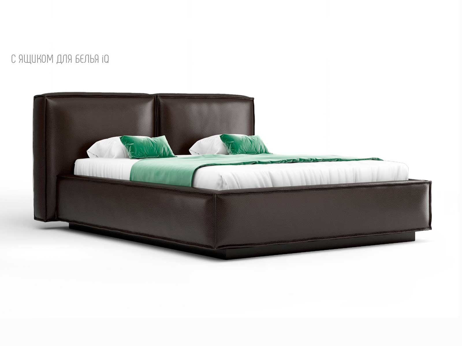 Кровать укомплектована IQ с подъемным механизмом и ящиком для белья без дна (дополнительная платная опция - дно к ящику IQ из HDF (ХДФ). Каркас кровати на цоколе, декоративный чехол на цоколе съёмный. Глубина ящика для белья - 30 см, без ограничения нагрузки на ящик.