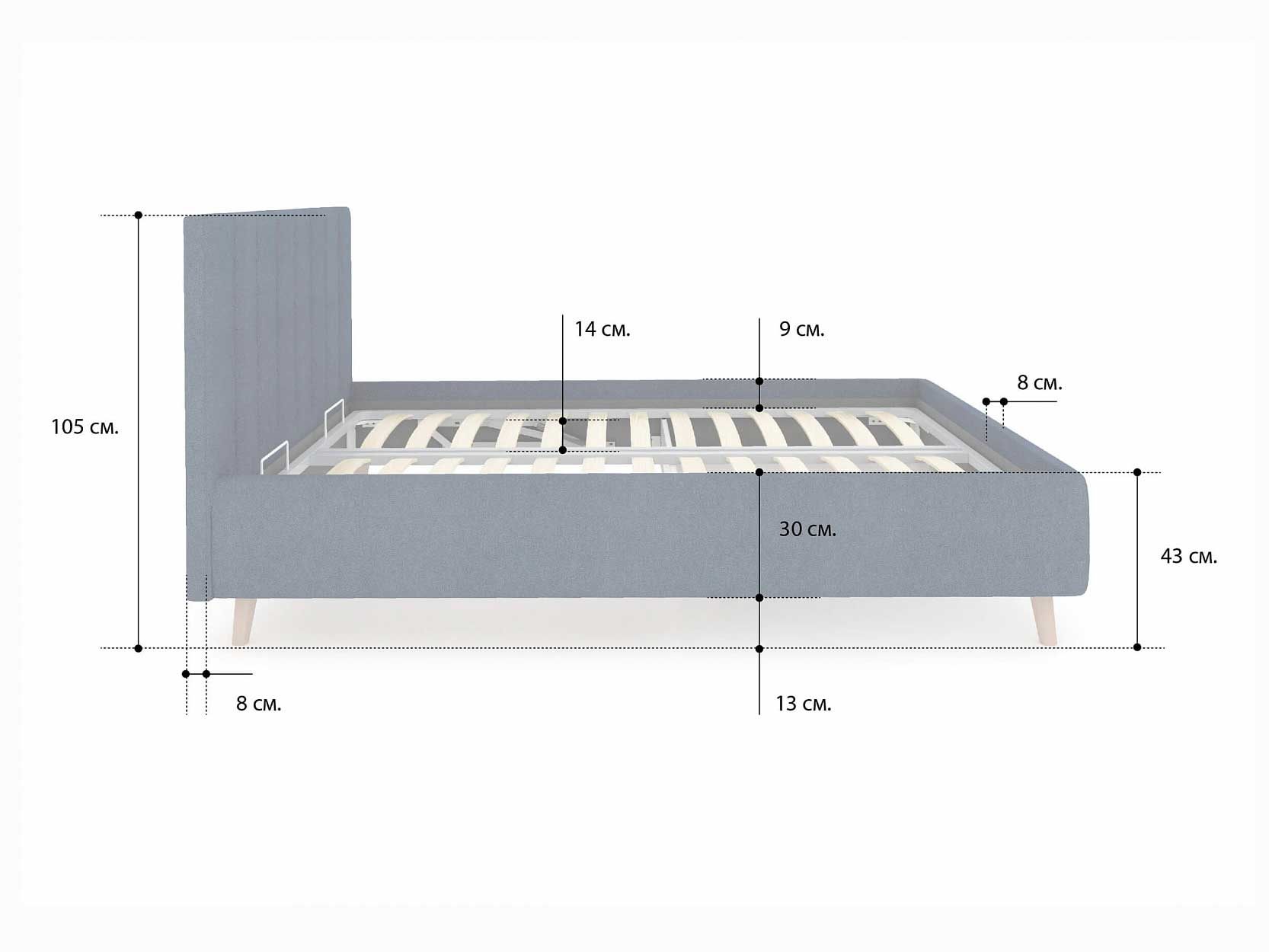 Допустимая высота матраса - 30 см.
