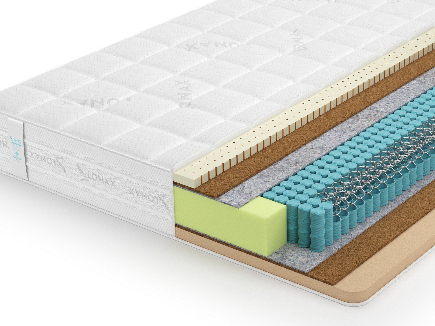Латекс и кокос – это классические наполнители, которые широко используются на протяжении последних десятилетий, а известны не одну сотню лет. Материалы великолепно дополняют и даже усиливают друг друга. Мягкая пена смягчает жёсткий кокос. А кокос же в сою очередь не позволяет мягкости быть чрезмерной и обеспечивает ортопедическую поддержку.