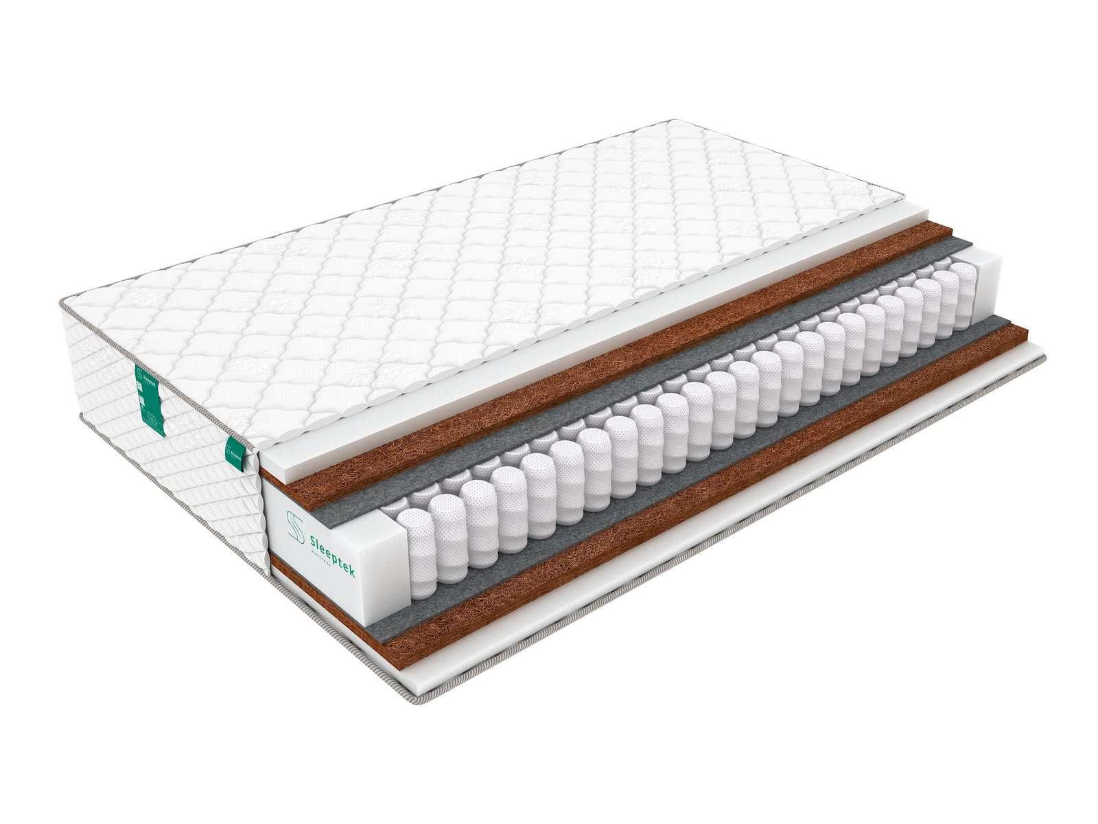 Наполнителями в этой модели выступают койра кокоса и ортопедическая пена. Толщина слоя койры: с жесткой стороны – 2 см, с более мягкой – 1 см. Толщина слоя пены: с жесткой стороны – 1 см, с более мягкой – 2 см. Оба наполнителя хорошо вентилируются, не накапливают пыль и неприятные запахи.