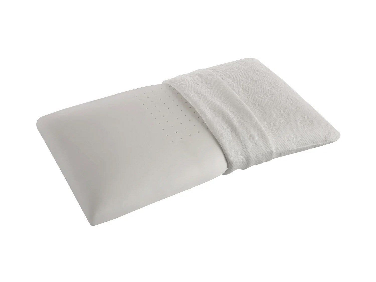 Наволочкой модели выступает съёмный чехол. Он оснащён вшивной молнией, поэтому его легко снимать для стирки, химчистки или ухода за изделием. Ткань чехла — это натуральная вискоза. Очень мягкий и нежный материал великолепно дышит и впитывает излишки влаги. Наволочка украшена стильным принтом в виде стилизованной флорентийской лилии. Её изображение является традиционным рисунком для итальянского региона, где находится фабрика Magniflex.