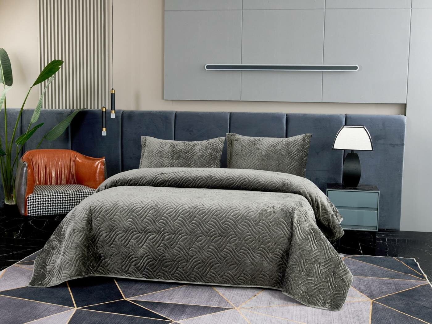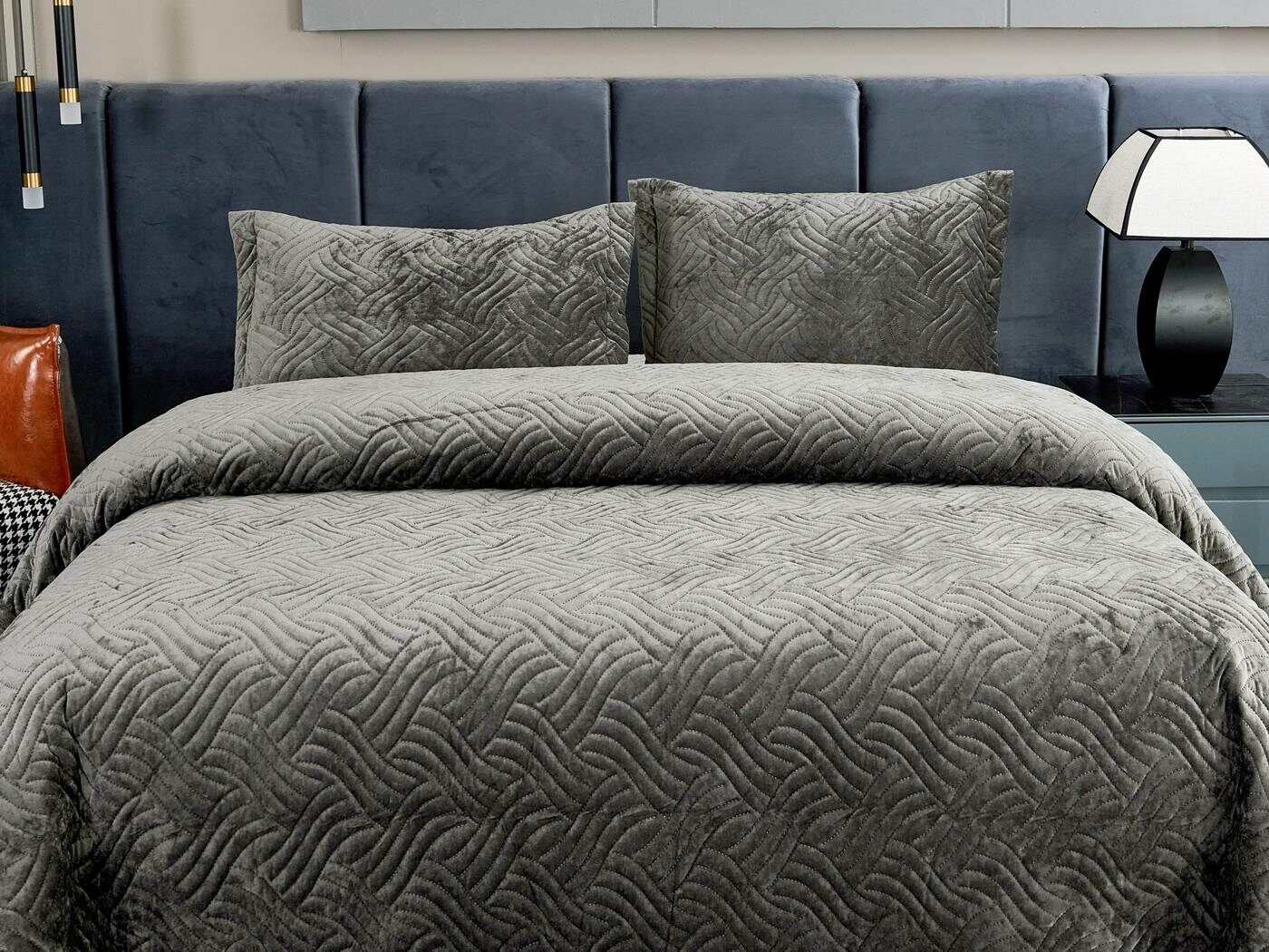 Покрывала «Деварта»: нежность и уют в вашем доме Окунитесь в мир комфорта и изысканности с новой коллекцией мягких бархатных покрывал «Деварта». Эти изделия станут настоящим украшением вашей спальни, добавив ей уюта и элегантности. Покрывала изготовлены из высококачественного бархата, который приятен на ощупь и обладает нежной бархатистой текстурой. Они устойчивы к износу и надолго сохраняют свой привлекательный внешний вид, яркость цвета и мягкость. Благодаря прочной и качественной декоративной стёжке «косичка» наполнитель надёжно зафиксирован внутри изделия. «Деварта» представлена в пяти оттенках: от тёплого бежевого до спокойного серо-голубого. Вы сможете подобрать идеальный вариант для вашего интерьера. Размерный ряд включает два варианта, что позволяет выбрать покрывало, которое идеально подойдёт для вашей кровати или дивана. В комплект входят две наволочки размером 50х70 см. Каждое покрывало аккуратно обшито кантом, а наволочки украшены милыми ушками шириной 5 см. Это придаёт изделиям особый шарм и делает их ещё более привлекательными. Не упустите возможность приобрести эти замечательные покрывала и создать в своём доме атмосферу тепла и уюта. «Деварта» подарит вам не только эстетическое наслаждение, но и незабываемые ощущения при каждом прикосновении.